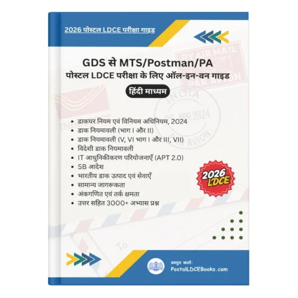 All in One Guide for MTS, Postman & PA LDCE Exam (Hindi) is a complete study resource designed for GDS, MTS, and Postman employees preparing for departmental promotion. The book covers the full LDCE syllabus, including postal rules, general knowledge, arithmetic, and reasoning, making it a perfect guide for Hindi-medium candidates.